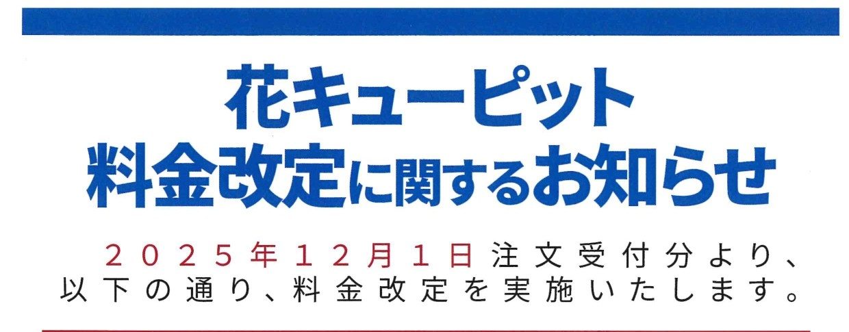 日頃より 青葉ガーデン をご利用いただき、誠にありがとうございます。このたび、花キューピット本部の料金改定に伴い、2025年12月1日より花キューピット国内注文の料金を下記の通り変更 させていただきます。 ※「花キューピ […]